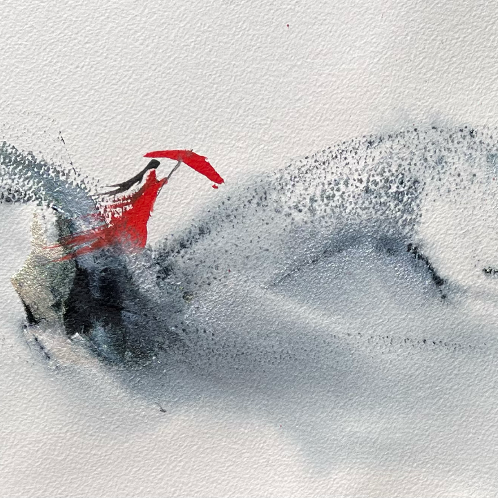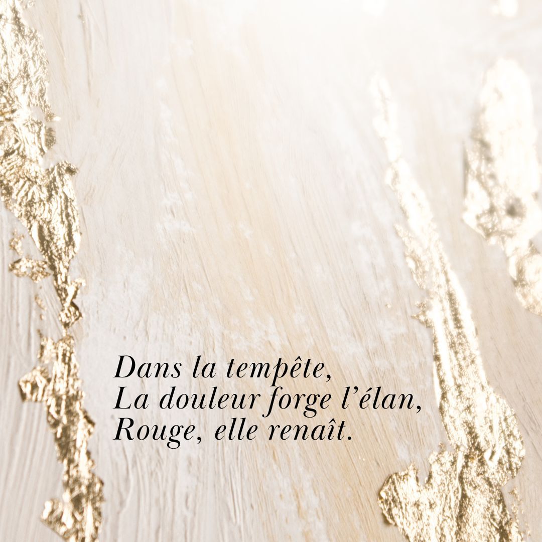Chaque trait, chaque éclat de rouge, raconte le choix de ne pas sombrer, mais de transformer la chute en élan.